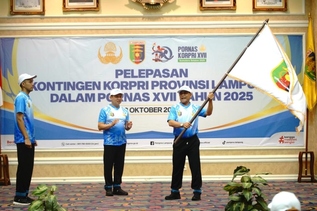 MATA VIVO – Semangat juang Provinsi Lampung siap diuji di ajang Pekan Olahraga Nasional (Pornas) XVII Korpri Tahun 2025. Kontingen Korpri Lampung resmi dilepas oleh Sekretaris Daerah Provinsi Lampung, Marindo Kurniawan, mewakili Gubernur Lampung, Kamis (2/10/25) di Balai Keratun Lt. III.